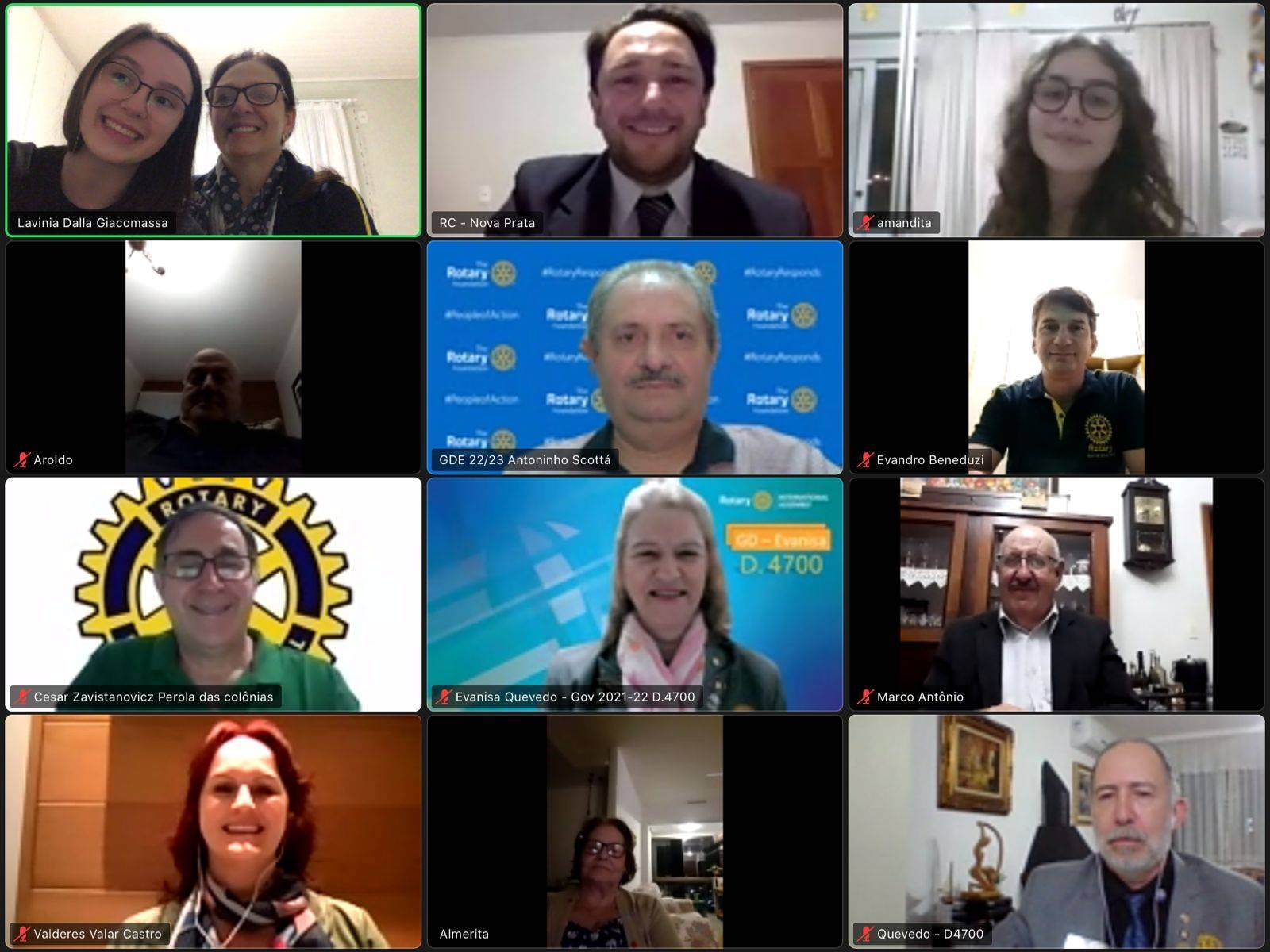 Na véspera de completar 46 anos de atividade, o Rotary Club Nova Prata teve a honra de receber de forma online em sua reunião, a governadora 2021-22 do distrito 4700, a companheira Evanisa Fátima Reginato Quevedo Melo. Participaram da visita oficial, além dos membros rotarianos, as senhoras da Casa da Amizade, os interactianos, a governadora assistente da região e os gestores da próxima gestão distrital do Rotary.