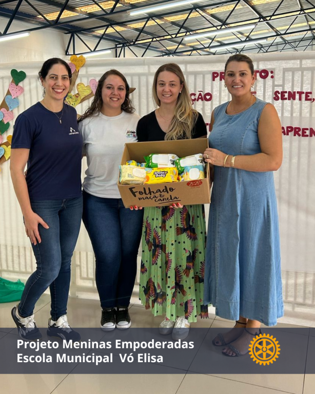 Na última semana, a Família Rotária, em parceria com a Secretaria de Educação de Nova Prata, finalizou mais uma etapa do Projeto Meninas Empoderadas! Os kits de higiene arrecadados foram entregues às escolas municipais para que as professoras possam distribuí-los conforme a necessidade de suas alunas.